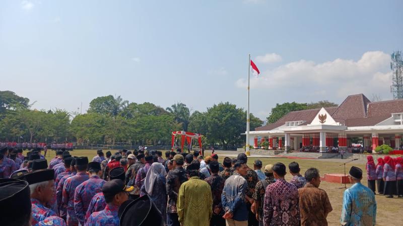 Magelang (08-11-2023) - Bupati Magelang, Zaenal Arifin memimpin apel akbar dihadapan 3500 orang perangakat desa yang tergabung dalam oraganisasi Persatuan Perangkat Desa Indonesia (PPDI) Kabupaten Magelang dengan mengangkat tema "Sinergi Perangkat Desa Menuju Desa Membangun dan Soliditas untuk Mewujudkan Kabupaten Magelang Sedaya Amanah".