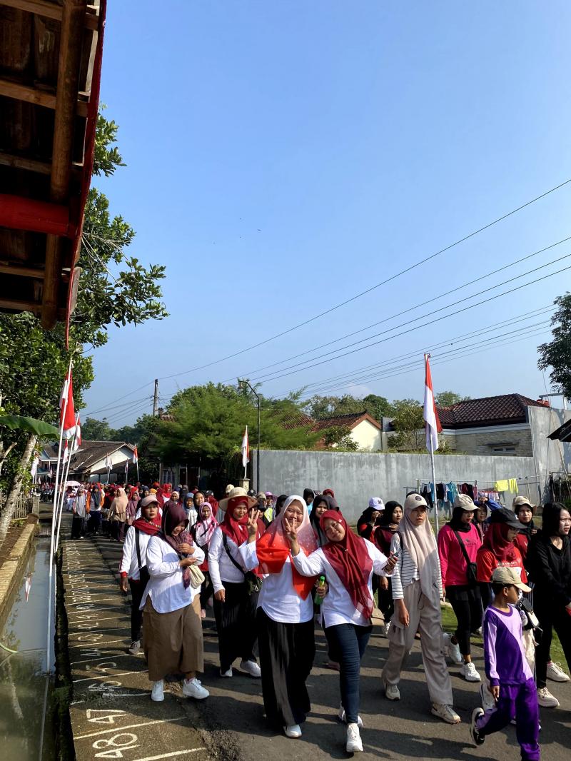 “Saya senang sekali bisa ikut jalan sehat ini. Selain sehat, bisa kumpul bareng tetangga dan semangat nasionalisme juga terasa,” ujar Siti Aisyah (34), salah satu peserta dari Dusun Krajan.